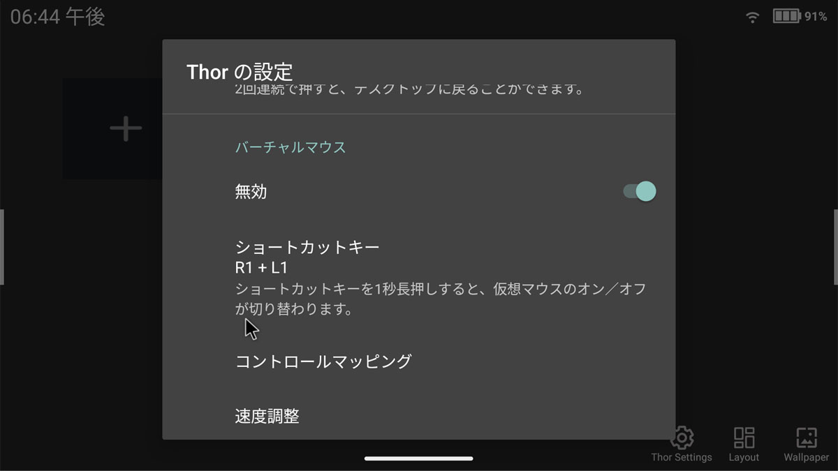 また、アプリ右下に「Thor Settings」アイコンがありますが、ここからThorの設定にアクセスできます
