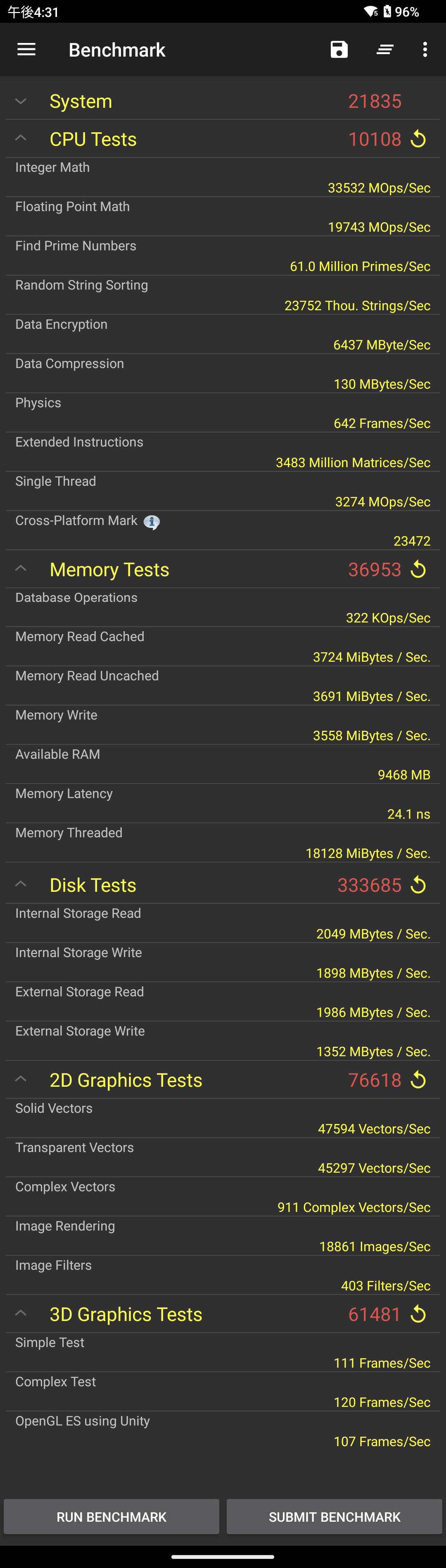 続いてもクロスプラットフォームで、端末の全体的なベンチを計測できるAntutuを実施します。私はPCでいうところのPCMarkみたいなイメージで参照していますが果たして……